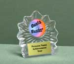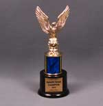 This beautiful gold eagle with spread wings recognizing accomplishment sits on a blue column accent.